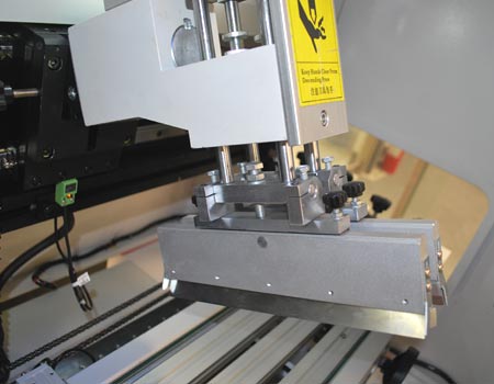 7. 印刷頭部可向前移動固定,配合鋼板圖樣的位置,以取得理想印刷效果;